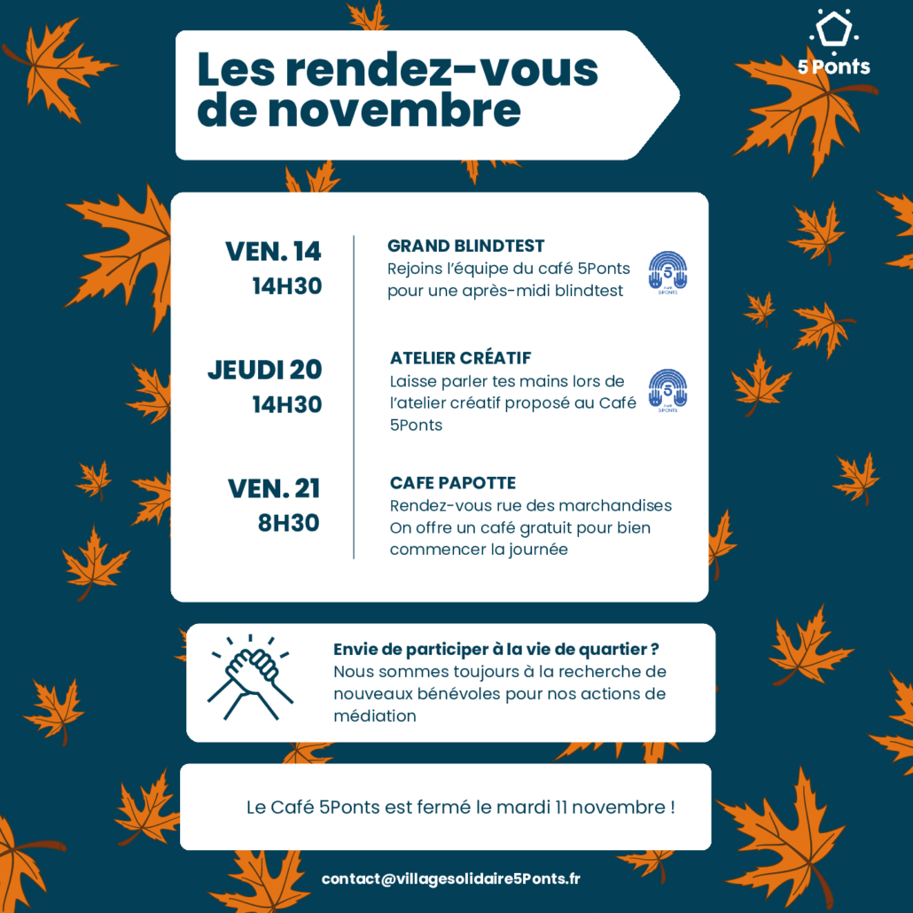 ☕ et pour finir on se retrouve comme tous les mois, rue des marchandises pour un café gratuit, le vendredi 21 novembre.