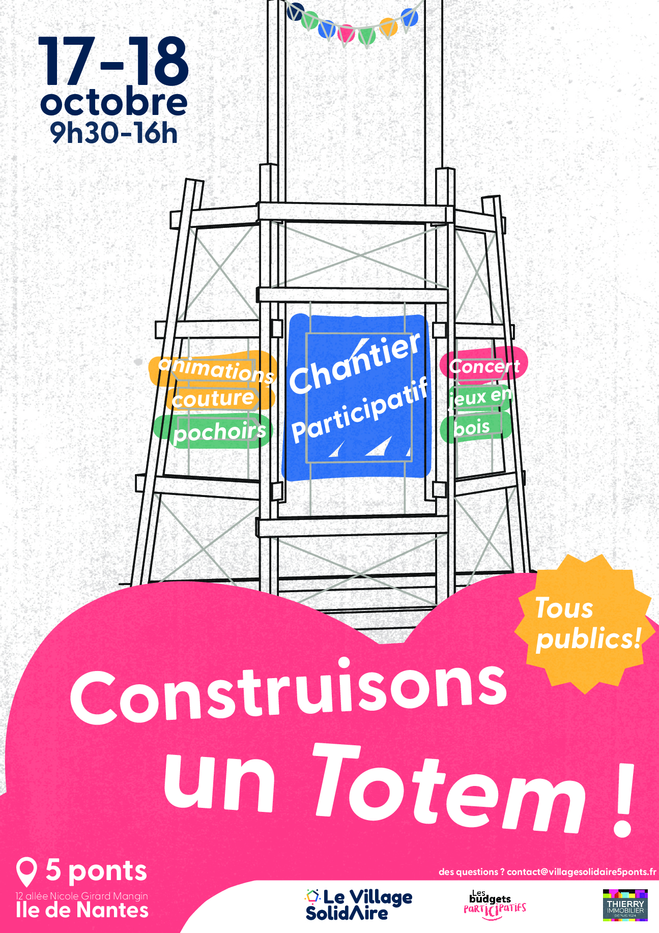 🔨 On se retrouve sous la voile @les5ponts pour construire les 2 totems de quartier avec @atelier_toboggan